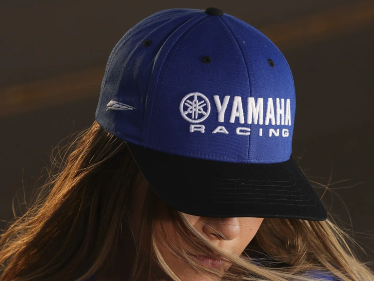 Tejido principal de sarga elástica, panel frontal bordado con logotipo Yamaha en 3D